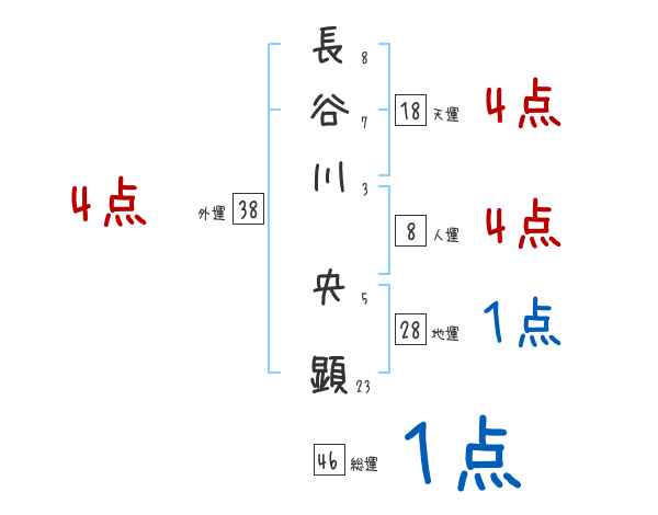 長谷川央顕さんの画数の鑑定結果