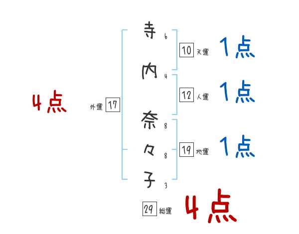 寺内奈々子さんの画数の鑑定結果