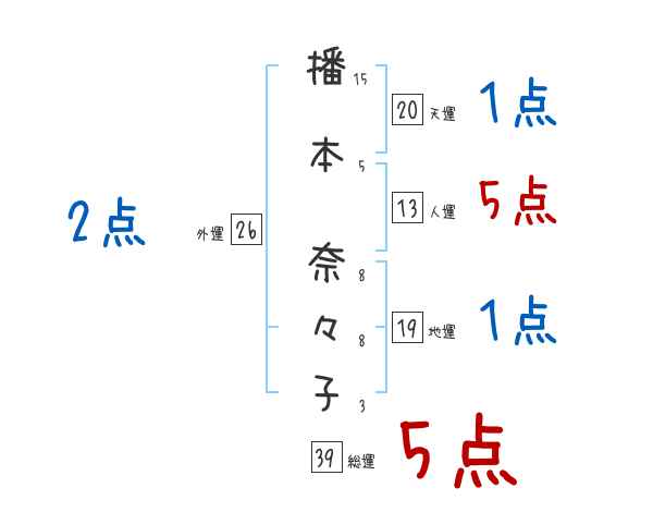 播本奈々子さんの画数の鑑定結果