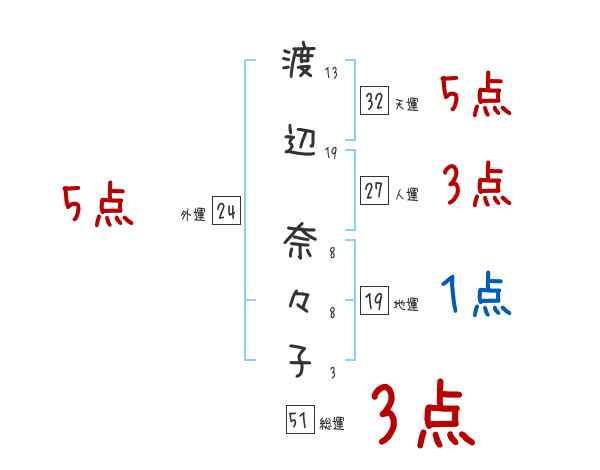 渡辺奈々子さんの画数の鑑定結果
