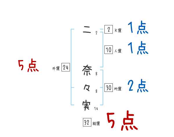 二奈々実さんの画数の鑑定結果