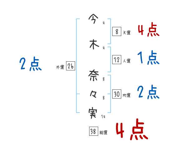 今木奈々実さんの画数の鑑定結果