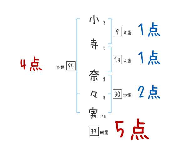 総運![]() | 小寺奈々実さんの総運は39画の5つ星!社交性に優れ人望が厚い。人の上に立ち成功する。 あなたの人生を表す1番重要な運勢です。生涯を通じて影響する総合運となり、主に50歳以降の晩年期に影響を及ぼします。 |