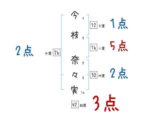 今枝奈々実さんの画数の鑑定結果