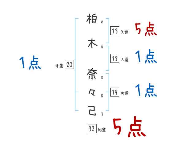 総運![]() | 柏木奈々己さんの総運は32画の5つ星!柔軟性があり成功する。チャンスが多く金運が良い。 あなたの人生を表す1番重要な運勢です。生涯を通じて影響する総合運となり、主に50歳以降の晩年期に影響を及ぼします。 |
