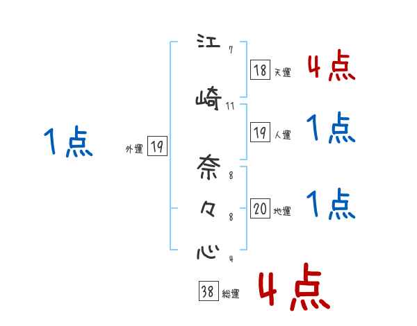 江崎奈々心さんの画数の鑑定結果
