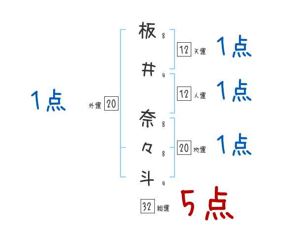 総運![]() | 板井奈々斗さんの総運は32画の5つ星!柔軟性があり成功する。チャンスが多く金運が良い。 あなたの人生を表す1番重要な運勢です。生涯を通じて影響する総合運となり、主に50歳以降の晩年期に影響を及ぼします。 |