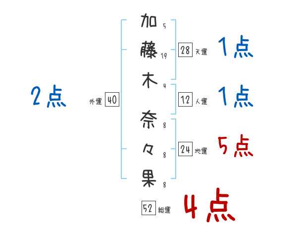 加藤木奈々果さんの画数の鑑定結果