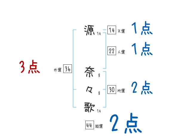 天運![]() | 源奈々歌さんの天運は14画の1つ星!人に対して優しいがストレスを溜め込みがち。人間関係のトラブルを避けるよう気をつけましょう。 家系が持つ宿命的な運勢を表します。祖先から受け継いだ苗字ですので自分の力が及びません。家柄を象徴します。 |