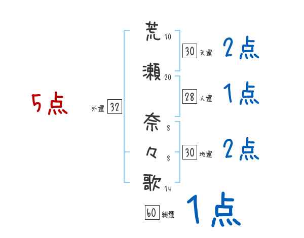 荒瀬奈々歌さんの画数の鑑定結果