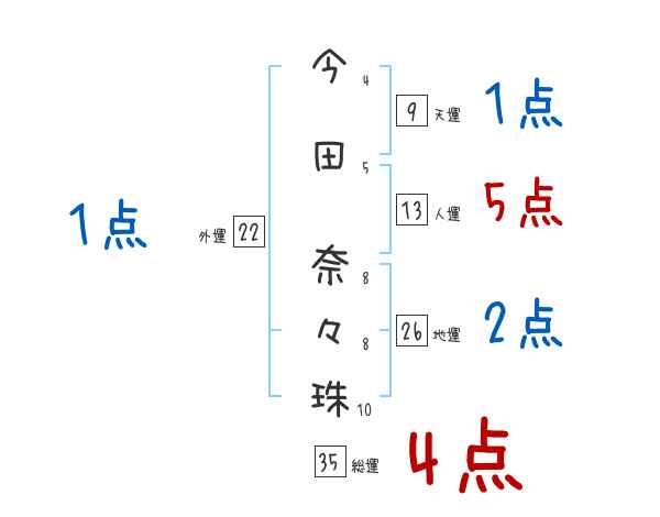 今田奈々珠さんの画数の鑑定結果