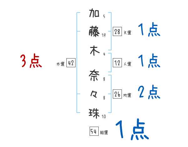 加藤木奈々珠さんの画数の鑑定結果