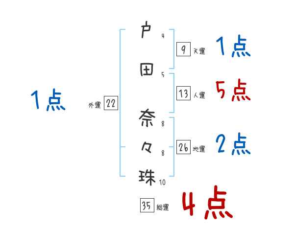 戸田奈々珠さんの画数の鑑定結果