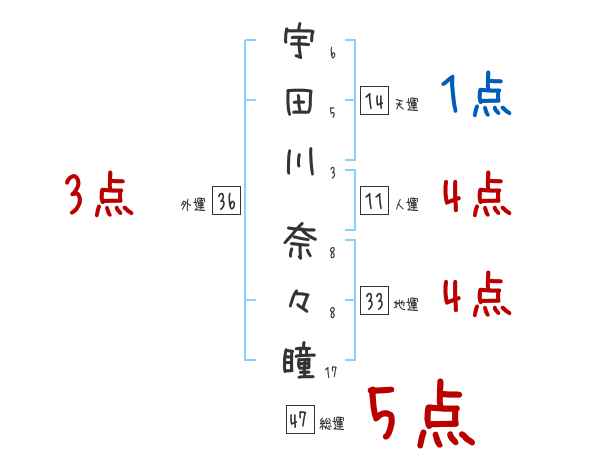 宇田川奈々瞳さんの画数の鑑定結果