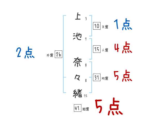 外運![]() | 上池奈々緒さんの外運は26画の2つ星!波瀾万丈かも。信頼できる人を大事にしましょう。 生活面を象徴する運勢です。外部から受ける影響力を表し、結婚運、家庭運や職場、環境への順応性を表します。 |