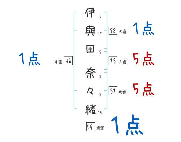 天運![]() | 伊與田奈々緒さんの天運は28画の1つ星!家庭環境に注意。スポーツで活躍できる能力があるかも。 家系が持つ宿命的な運勢を表します。祖先から受け継いだ苗字ですので自分の力が及びません。家柄を象徴します。 |