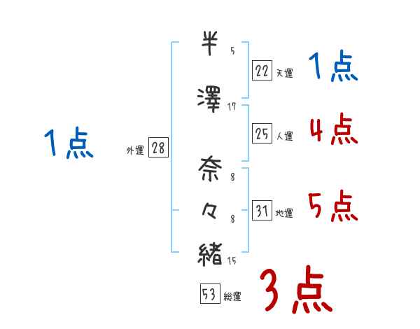 外運![]() | 半澤奈々緒さんの外運は28画の1つ星!家庭環境に注意。スポーツで活躍できる能力があるかも。 生活面を象徴する運勢です。外部から受ける影響力を表し、結婚運、家庭運や職場、環境への順応性を表します。 |