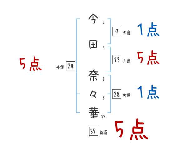 今田奈々華さんの画数の鑑定結果