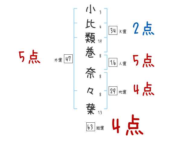 小比類巻奈々葉さんの画数の鑑定結果