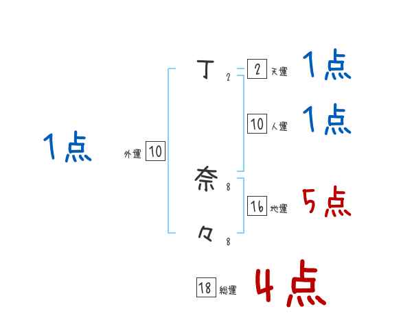 外運![]() | 丁奈々さんの外運は10画の1つ星!不安を感じやすい傾向。ストレスを抱えないように注意しましょう。 生活面を象徴する運勢です。外部から受ける影響力を表し、結婚運、家庭運や職場、環境への順応性を表します。 |