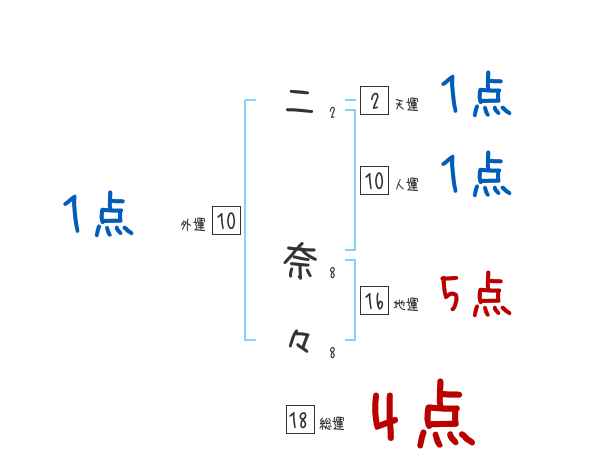二奈々さんの画数の鑑定結果