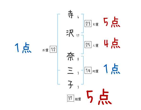 寺沢奈三子さんの画数の鑑定結果