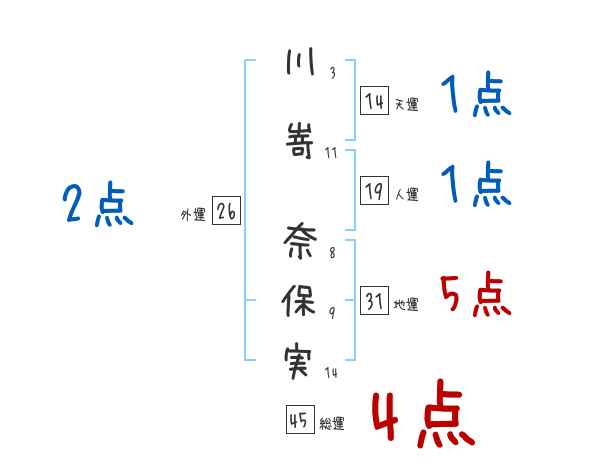 外運![]() | 川嵜奈保実さんの外運は26画の2つ星!波瀾万丈かも。信頼できる人を大事にしましょう。 生活面を象徴する運勢です。外部から受ける影響力を表し、結婚運、家庭運や職場、環境への順応性を表します。 |