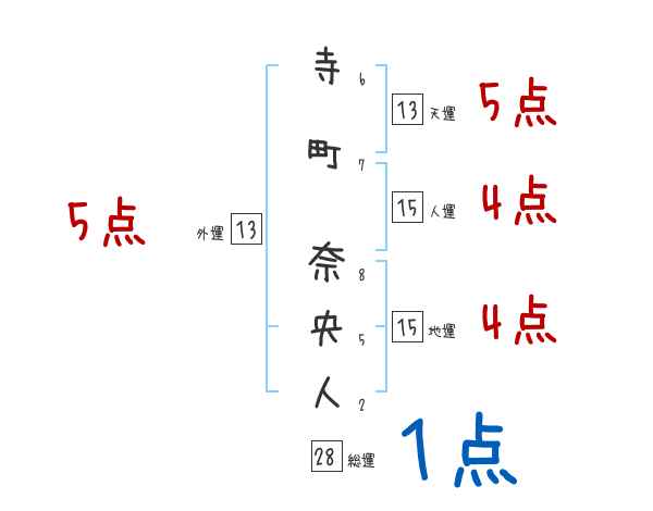 寺町奈央人さんの画数の鑑定結果