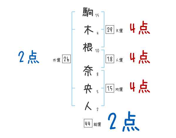 駒木根奈央人さんの画数の鑑定結果