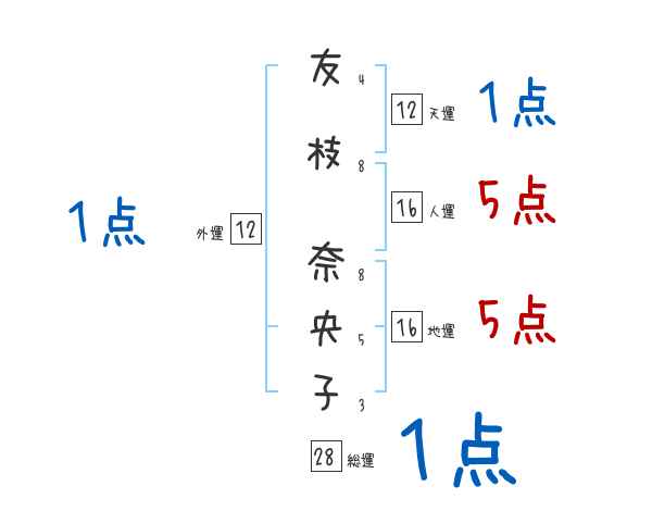 地運![]() | 友枝奈央子さんの地運は16画の5つ星!人望が厚く大きく発展する。逆転成功が見える。 個性を表す基礎的な運勢です。性格形成や対人関係、行動力など家庭環境に影響されます。主に誕生してから20歳くらいまでの若年期の運勢を表します。 |