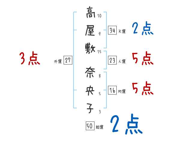 高屋敷奈央子さんの画数の鑑定結果