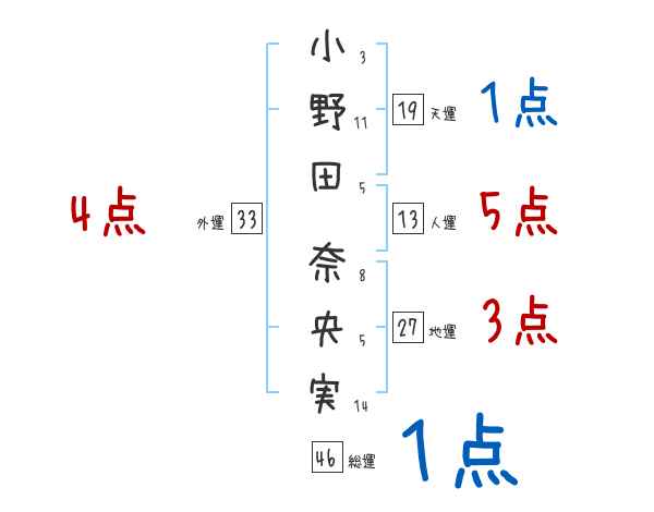 小野田奈央実さんの画数の鑑定結果