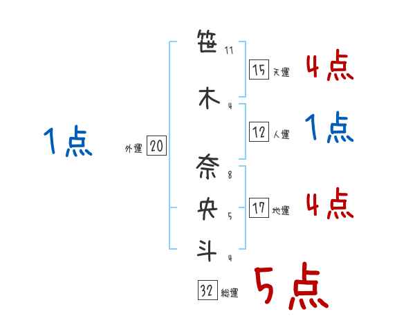 総運![]() | 笹木奈央斗さんの総運は32画の5つ星!柔軟性があり成功する。チャンスが多く金運が良い。 あなたの人生を表す1番重要な運勢です。生涯を通じて影響する総合運となり、主に50歳以降の晩年期に影響を及ぼします。 |