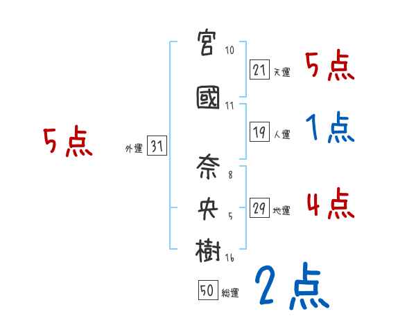 宮國奈央樹さんの画数の鑑定結果