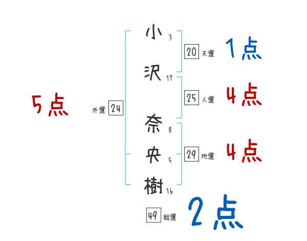 外運![]() | 小沢奈央樹さんの外運は24画の5つ星!家庭運が良く順調な人生。金運にも恵まれる。 生活面を象徴する運勢です。外部から受ける影響力を表し、結婚運、家庭運や職場、環境への順応性を表します。 |