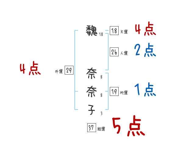 魏奈奈子さんの画数の鑑定結果