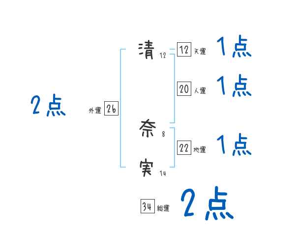 清奈実さんの画数の鑑定結果