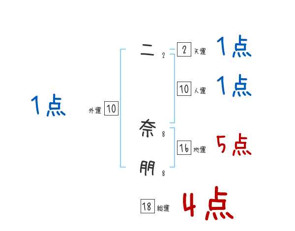 二奈朋さんの画数の鑑定結果
