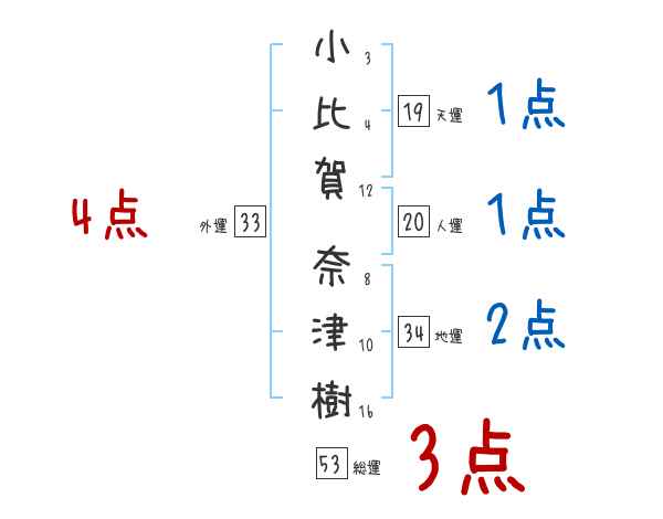 外運![]() | 小比賀奈津樹さんの外運は33画の4つ星!権力志向でプライドが高い。勇気があり運を切り開き成功する。 生活面を象徴する運勢です。外部から受ける影響力を表し、結婚運、家庭運や職場、環境への順応性を表します。 |