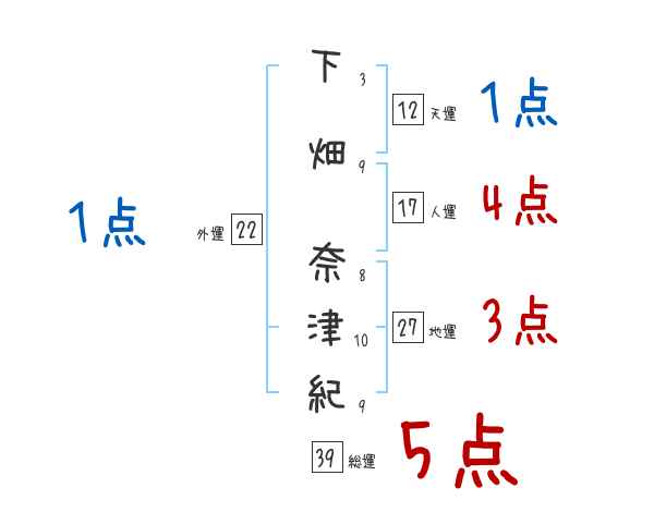 下畑奈津紀さんの画数の鑑定結果