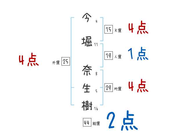 今堀奈生樹さんの画数の鑑定結果