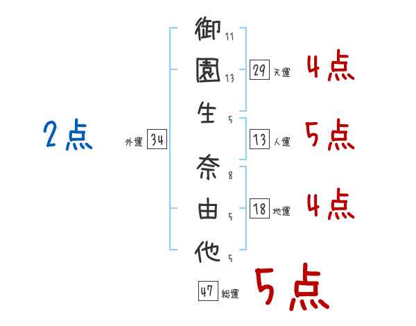 御園生奈由他さんの画数の鑑定結果