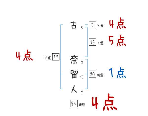 古奈留人さんの画数の鑑定結果