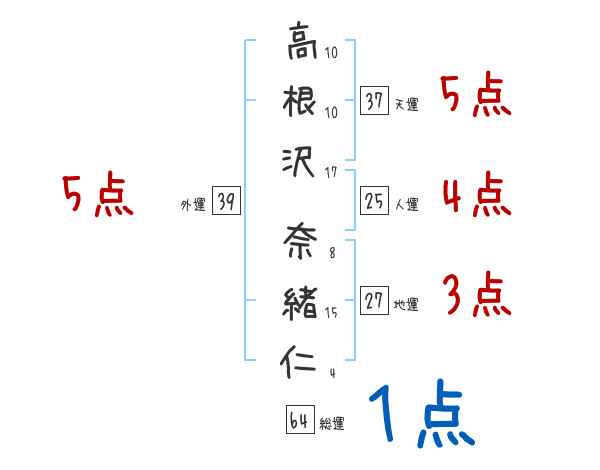 高根沢奈緒仁さんの画数の鑑定結果