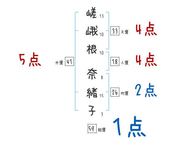 嵯峨根奈緒子さんの画数の鑑定結果