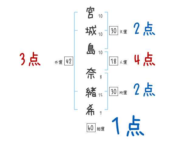宮城島奈緒希さんの画数の鑑定結果