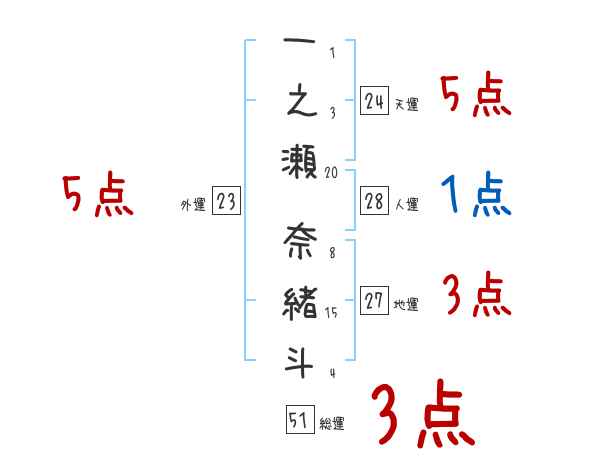 一之瀬奈緒斗さんの画数の鑑定結果