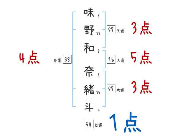味野和奈緒斗さんの画数の鑑定結果