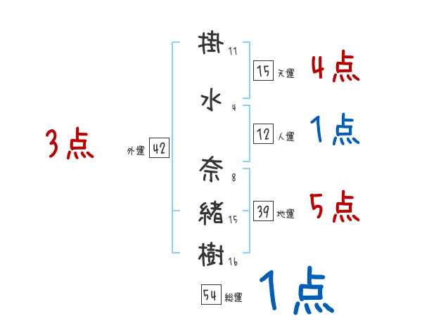 外運![]() | 掛水奈緒樹さんの外運は42画の3つ星!病気に注意。多芸であるが消極的でおとなしい。 生活面を象徴する運勢です。外部から受ける影響力を表し、結婚運、家庭運や職場、環境への順応性を表します。 |