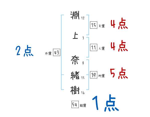淵上奈緒樹さんの画数の鑑定結果